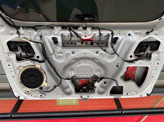 引擎蓋 區(qū)域我們使用 大能紅派 與專用 銀衛(wèi)士 做雙層隔音。紅派負(fù)責(zé)減少引擎振動帶來的蓋板抖動,銀衛(wèi)士則能有效反射發(fā)動機(jī)艙的熱量,保護(hù)引擎蓋漆面,同時(shí)降低發(fā)動機(jī)工作噪音向車廂內(nèi)的傳遞。尾門 結(jié)構(gòu)與車門類似,我們使用 紅派 進(jìn)行止振處理,確保車輛后部的靜謐性與整體性。