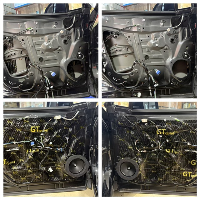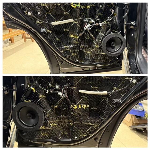 原車(chē)?yán)茸龉ご植冢捎昧畠r(jià)塑膠盆架,材質(zhì)單薄,發(fā)聲時(shí)易產(chǎn)生共振,導(dǎo)致音質(zhì)渾濁、細(xì)節(jié)丟失;同時(shí)原車(chē)門(mén)板內(nèi)部?jī)H為簡(jiǎn)陋鐵皮結(jié)構(gòu),無(wú)任何隔音措施,行駛過(guò)程中風(fēng)噪、路噪極易通過(guò)門(mén)板傳入車(chē)內(nèi),嚴(yán)重干擾音樂(lè)播放效果。