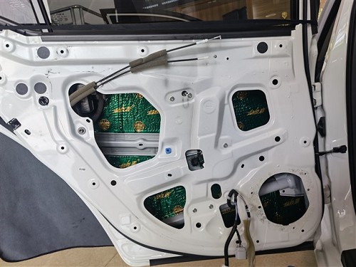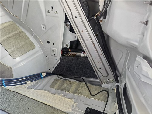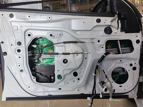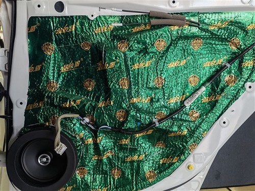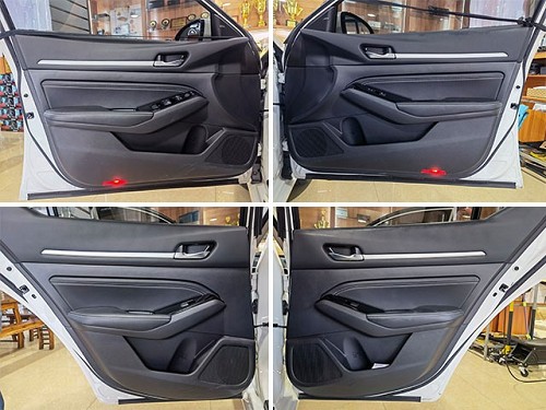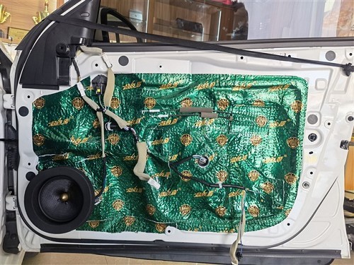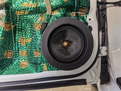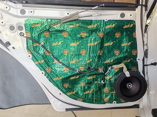 為了音響器材能夠有更好的音質(zhì)表現(xiàn),改裝技師將天籟前后門板,都用大能超級(jí)盾止震板做了雙層隔音處理,減少噪音的傳入,防止車門共振,為接下來要改裝的喇叭提供一個(gè)良好的聲學(xué)環(huán)境。