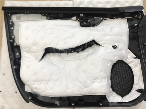 車主在此之前并無(wú)任何改裝經(jīng)驗(yàn),使得車主對(duì)隔音效果持有一定懷疑態(tài)度。經(jīng)過(guò)與泉州海林改裝團(tuán)隊(duì)溝通交流之后,車主決定先對(duì)門板做隔音處理,看一下隔音的效果。